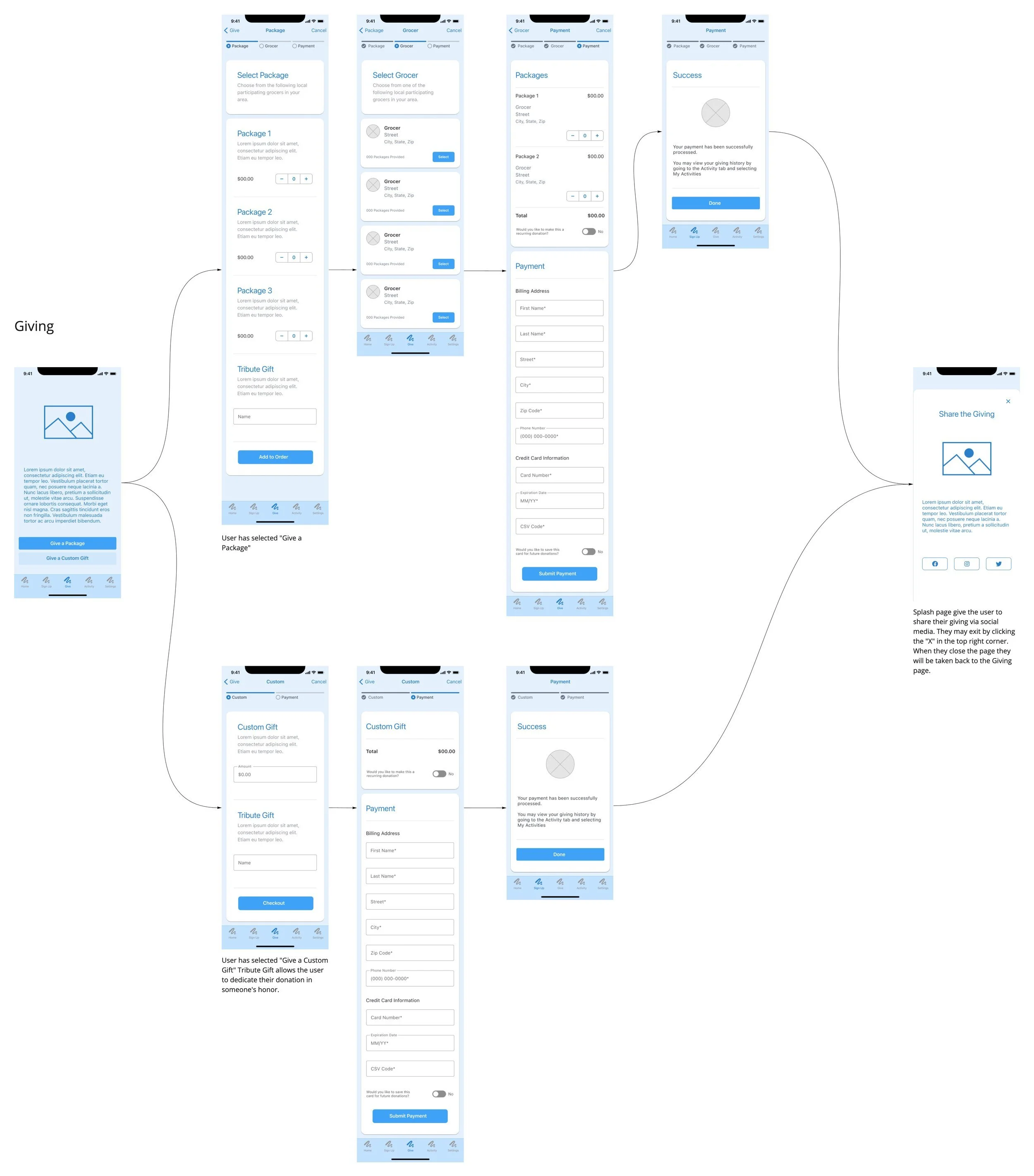 More functionality needs to be designed, specifically the Fundraising user flow. The payment portal would need to be improved to accommodate SSL requirements for payment. User flows for the social media integration need to be designed and evaluated for feasibility as it pertains to posting functionality. Also, I would like to conduct further research on the non-profit business model to evaluate its feasibility.